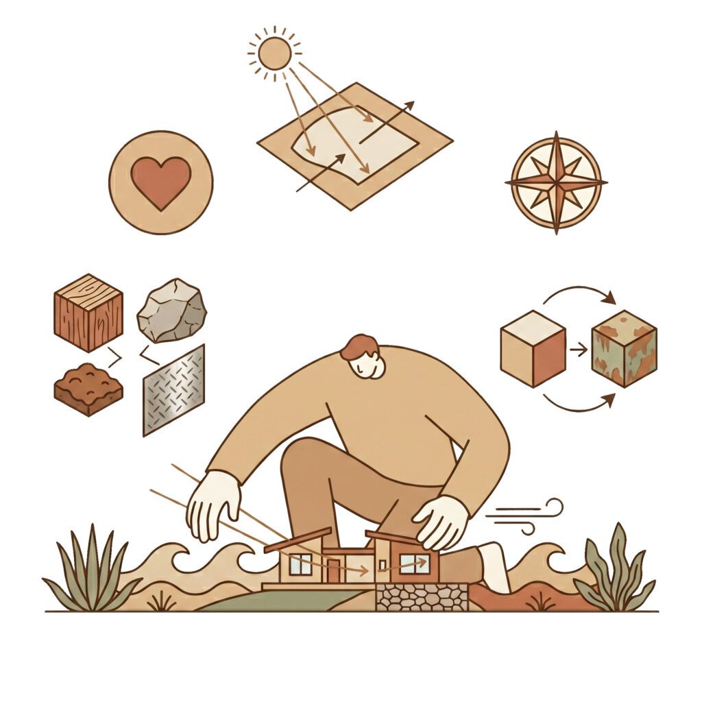 さらに私たちは、「素材の表情」にも目を向けます。木、石、土、金属。それぞれの素材には、独自の質感や経年変化があります。