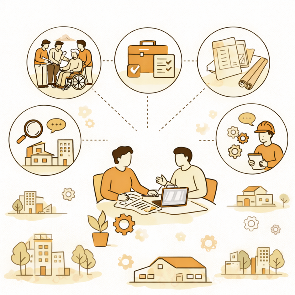 福祉施設の設計は、パートナー選びで決まると言っても過言ではありません。以下の5つの視点から、ご自身のプロジェクトに合う事務所を検討してみてください。